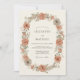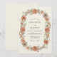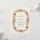 Denna botaniska design har en frodig arrangemang av dämpade rost- och grå rosor inklämda bland mjuk salvia grön bladverk. En krämfärgad bakgrund ger en varm, ren duk för de känsliga akvarell blomsterelementen. Paletten av jordnära terrakotta och dammiga toner skapar en sofistikerad atmosfär perfekt för ett säsongsbetonat bröllop.