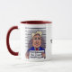 En mugg med en lustig tecknad om Donald Trump. Bakgrund, bild och text kan anpassas. Originalteckningar efter DBcartoons.