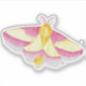 En illustration av en suddig rosa och gult Rosy Maple Moth. gjord med hjälp av en dip- penna och specialpenna bläck.