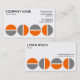 En visitkortsmall med ett attraktivt roterande geometriskt cirkelmotiv där varje cirkel roteras 90 grader mot den föregående cirkeln. Företag namn, affärstyp/offert, tillsammans med adress och telefonuppgifter på framsidan, med uppgifter om namn, rubrik, e-post och webben på baksidan. Utformningen kan dock anpassas på flera olika sätt.