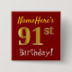 Detta enkelt kvadrerar knäppas designsärdrag en meddelandenågot liknande"NameHeres 91st födelsedag! " med "91st" ha en look för faux-/efterföljdguld-något liknande färgläggning, på en röd kulör bakgrund. Namn kan vara personligen. Knäppas något liknande som dessa kunde kanske ha på sig av gäster på en födelsedagsfest för någon, som firar deras första födelsedag för nittio, var partyet rymms i ett stort område med raddor annat folk gåva (liksom en stad, parkera eller ett nöjesfält). [~Z0000163]