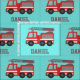 Ett tyg med ett rött avfyrar lastbilen som har vitrandar på dess sida och en infällbar stege med att vattna med slang. Använd detta tyg för att göra gardiner, eller att kudde täcker, och många mer för ungar hyr rum, om speciellt han gillar avfyrar motorer. Personifiera lätt med barnets namn.