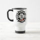 Rött avfyra lastbilar för rädding som brandmän som kör akut, rusar avfyrar på den maltese arga logotypen för avdelning.