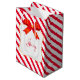 Vackert rött band och röd vit, rund bakgrund Gift Bag. Joy-text kan vara personlig.