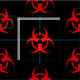 Mönster för Biohazardvarningssymbol i rött och svart.