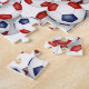 Det röda och blå laget färg-soccer-puspussel för flickor eller pojkar har ett till synes ändlöst mönster med fotbollar i varierande storlek och på olika djup, som vrids på alla sätt - de typiska svarta panelerna har färgats och blått - anpassat med fotbollsspelarens namn - av katz_d_zynes