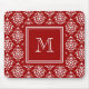 Rött damastast mönster 1 med monogramen musmatta