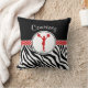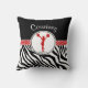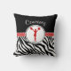 Dekorativ kudde för för vildzebra tryckcheerleading eller pom i rött. En hejaklacksledare- eller pomflickasilhouette poserar insida en cirkla, och det finns "polka-pricker" banret för kontrast. Tillfoga ditt egna namn, innan du beställer!