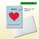 Anpassa det här kortet med någon speciellare namn. Leende och lycka, värme och kärlek: Vilket bättre sätt att uttrycka dina känslor? Ett stort rött hjärta med stort leende illustrerar texten "Du får mitt hjärta att le" eller så kan du redigera det för din egen hälsning. Två par mindre röda hjärtan och en blek blå bakgrund med hjärta sluter utformningen.