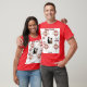 Röd färg brölloppspar bröllopsfirande T-shirt, Du kan skriva eller redigera texter som datum, text, framsida och baksida Glad bröllopstext, Passets namn som mansnamn, kvinnonamn, parets foto och bröllopsbild.