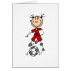 En spelare för stick figurflickafotboll i ett rött enhetligt med fotbollboll på en anpassadestick figurdesign.