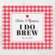 Den perfekta anpassade dekorationen för en Jag gör BBQ-förlovningsfest, coupleshower eller provmiddag har denna ölflasketikett parets namn och bröllopsdatum plus ett roligt ordspel, "Jag brygger" allt mot ett klassiskt utomhusmotiv av rött gingham, som en picknickduk.