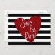 Rött glitterhjärta svart-vitrandig vykort