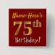 Detta enkelt kvadrerar knäppas designsärdrag födelsedagen för 75:e för Namn-Här för en meddelandenågot liknande "! " med "75:e" som har en look för faux-/efterföljdguld-något liknande färgläggning, på en röd kulör bakgrund. Namn kan vara personligen. Knäppas något liknande som dessa kunde kanske ha på sig av gäster på en födelsedagsfest för någon, som firar deras femte födelsedag för sjuttio, var partyet rymms i ett stort område med raddor annat folk gåva (liksom en stad, parkera eller ett nöjesfält). [~Z0000163]