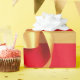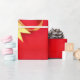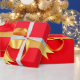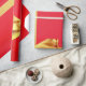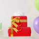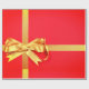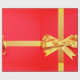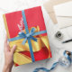 En ljusröd presentlåda inslagen med ett blankt guld band och krönt med en fullständig, elegant rosett. Den djärva röd-guldkontrasten ger den en festlig, lyxig känsla.