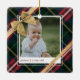 Elegant och speciella minnesfamiljens foto med flera färgader rött och grönt plaid faux-tyg mönster ornament. Designad för att likna ett Julklapp. Vi har dekorerat prydnaden med ett vackert guld-båge och band. En fotolayout på vardera sidan av ornament för att visning ditt speciella familjefoto eller ditt barn-foto med anpassningsbar på vardera sidan. Den inlagda utformningen skapas av Moodthology Papery.