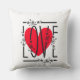Rött hjärta & blommig text grafik modern & snygg kudde