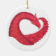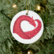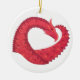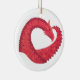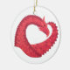 Rött hjärta drakar på vitt julgransprydnad keramik