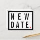 Berätta för dina gäster att bröllopet har skjutits upp och ge dem ett nytt datum eller länken till din hemsida för mer information med detta söta vykort med en minimalistisk typsnittsdesign i svart och vitt med ett rött hjärta som ersätter punkten. Nytt datum skrivs på framsidan av annonskortet och pryds med ett rött hjärta. På andra sidan kan du skriva den nya informationen och under ett litet hjärta, era namn i ett modernt fetstil script.