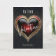 Den här eleganta valentin-kortet har ett rubinrött hjärta med ordet "Valentine" tvärs över i elegant skrivstil, vilket ger en extra touch av romantik. Den snygga svarta bakgrunden och de subtila detaljerna med falskt glitter ger en glamourös touch. I kortet står det "Happy Valentine's Day", vilket kan anpassas vid behov. Lägg till mottagarens namn högst upp på kortet och ditt eget personliga meddelande nedanför hjärtat. Det här kortet kommer säkert att få deras hjärta att glänsa!