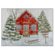 En charmerande utformning med god vinterbakgrund med träd och ett rött hus! En söt, underbar vinterdesign.