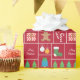 Ett mönster med några julsymboler på röda rektanglar. Du kan redigera och sätta din egna ord. God jul!