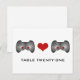 Den här Cute Gamer Bröllop-Bordsnumret-vykortet med en chic av videospelskontroller med röda knappar är en Quirky- som är helt fantastisk. Ett hjärta i mitten förbinder de två styrenheterna. Det här nervösa bord-kortet är perfekt för spelparet. Enkel att anpassa, lägg helt enkelt till rätt bordsnummer i den text fält tillhandahåller. Klicka på Anpassa om du vill söka efter fler anpassningsalternativ.