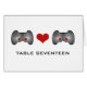 Den här Cute Gamer Bröllop-Bordsnummer-kortet med en chic med en uppsättning videospelskontroller med röda knappar. Ett hjärta i mitten förbinder de två styrenheterna. Det här nervösa bord-kortet är perfekt för spelparet. Enkel att anpassa, lägg helt enkelt till rätt bordsnummer i den text fält tillhandahåller. Klicka på Anpassa om du vill söka efter fler anpassningsalternativ.