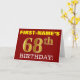 Denna design för födelsedaghälsningkortet presenterar ett meddelandenågot liknande"FÖRNAMN 68th FÖDELSEDAG! " med "68th" ha en utseendemässig faux-/efterföljdguld-något liknande färg. Mottagarens namn på bekläda kan skräddarsy, och beklädabakgrunden är färgat rött. Den presenterar också ett meddelande för anpassadefödelsedaghälsning på insidan. En något liknande för födelsedaghälsningkort detta kunde kanske vara fallen för någon i firande av deras sextio åttonde födelsedag. [~Z0000184]