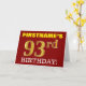 Denna design för födelsedaghälsningkortet presenterar en meddelandenågot liknande"FIRSTNAMES 93rd FÖDELSEDAG! " med "93rd" ha en utseendemässig faux-/efterföljdguld-något liknande färg. Mottagarens namn på bekläda kan skräddarsy, och beklädabakgrunden är färgat rött. Den presenterar också ett meddelande för anpassadefödelsedaghälsning på insidan. En något liknande för födelsedaghälsningkort detta kunde kanske vara fallen för någon i firande av deras tredje födelsedag för nittio. [~Z0000184]