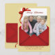 En unik inbjudan med ett rött kuvert som visar dina favoritbilder. Fotots överkant har en vit gräns med en "God jul"-stämning och en söt röd och guld. Allt är överlagt mot en blek smörgräddbakgrund. (PSD)