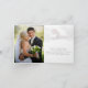 Det här stillsamma vinterbröllopsfotots tackkort har en snöig scen med en stor röd trälada och snötäckta träd på en mörkgrå FAUX sprickfinishbakgrund som matchar bröllopsinbjudan som visas nedan. Du kan också välja en större storlek på 5"x7". Om det finns andra matchande föremål som du behöver, vänligen maila din förfrågan till niteowlstudio@gmail.com.