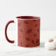 Rött lövmönster på orangen mugg