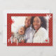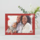 Julkort, med grönt polka dots på röd helgdag med "Mer och merrier" i finare kalligrafi-skript. Anpassa med fotot på kortets framsida och namn med meddelande på kortets baksida.
