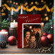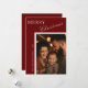 Rött med Silver-skript-fotokort för skriptfamiljen. Fira säsongen med den här eleganten rött med silver-julkort, med ett familjefoto på högerna. Utformningen är porträtt stil och innehåller manusgrafi för skript, med ett festive red gräns på två sidor av bilden med matchande röd text för en munter beröring. Anpassa kortet med ditt eget foto, med namn, med ett hjärtligt budskap och året skapar du det som en äkta personlig Julhälsningar.