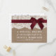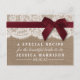 Dessa rustiska röda band med bog-, knäpp- och snöre-möhippa-recept kommer att göra perfekten medhjälpare för vilken brud som helst! Utformningen har en underbar bakgrund av strålningseffekten med en romantisk vintage vit snöre-effekttrim avslutat med ett bedövande rödband med båge. Dessa receptkort kan vara personlig för ditt särskilda tillfälle och skulle göra perfekten åtskild för alla rustiska bröllop, möhippa, förlovningsfest, födelsedagsfest och mycket, mycket mer. *Observera att Zazzle endast säljer tryckta kort, så att dessa kort inte har något riktigt material som täcker snöre, buskar eller band.