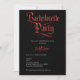 Rött metallskript för gotbachelorette på svart inbjudningar