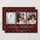 Rött julkort med 3 av dina foton. Enkel att anpassa med namn och år.