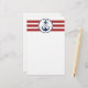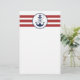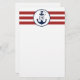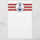 Röda nautiska randar med marinblått ankrar och monogramen.