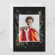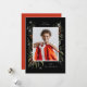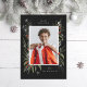 Ursprunglig illustration julbär och snöflingor över svart med porträttfoto. Anpassa baksidan efter önskemål.