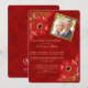 Denna vackra och eleganta design, kallad "Red and Gold 40th Wedding Anniversary" har en vacker röd bakgrund. I motsatta hörn finns ett vackert guldglänsande damaskmönster med en röd rosett. I mitten av varje rosett finns ett falskt guld- och rubinhjärta. Denna design är perfekt för paret som firar sin 40-årsdag med den speciella rubin-inspirerade designen som en hälsning till traditionell årsdagspresent. Det skulle vara perfekt för din fyrtioårsdagskalas eller -fest!