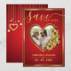 Rött och guld bröllopstema foto i hjärta spara datumet