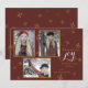 Ett fantastiskt helgdag-kort i djup burgundi med shimmering, guld, snöflingor och tre bildfönster.
