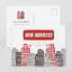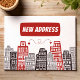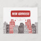 Tecknad stil mönster med röda och svarta retrohus för ett mycket exklusivt meddelande om ny adress.