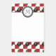 Röd traditionell stil och vit kontrollerar med en stolt tupp i förgrunden. Amerikanlandstil.