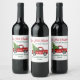 Rött penselskript Första jul - nytt hem Lastbil Vinflaska Etikett