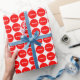 Ett slående in pappert designat med ett rött pricker mönster på en vitbakgrund och namn. Skräddarsy det slående in papperet med ditt speciella namn eller text bland andra alternativ.