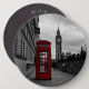 Knäppas med ett selektivt färgfoto av ett rött ringer boxas i staden centrerar av London, UK med den stora Benen i bakgrunden på minnedag.