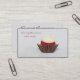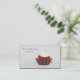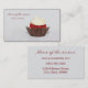 En bagerivisitkort med en fotografera av en röd sammetmuffin mot en grå färgbakgrund.