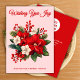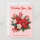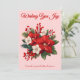 Ett dynamiskt rött kort med klassiskt skript för fet helgdag. Perfekt för kundens uppsökande.